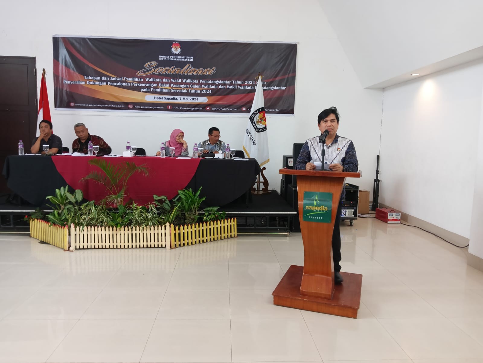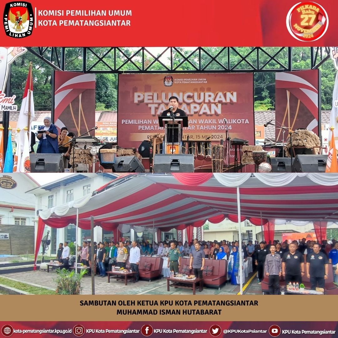 Pematangsiantar, kota-pematangsiantar.kpu.go.id Komisi Pemilihan Umum Kota Pematangsiantar melaksanakan Peluncuran Tahapan Pemilihan Walikota dan Wakil Walikota Pematangsiantar Tahun 2024, Lapangan Pariwisata Rabu, 15/5/2024. Peluncuran Tahapan Pemilihan Walikota dan Wakil Walikota Pematangsiantar secara resmi di buka Ketua KPU Kota Pematangsiantar Muhammad Isman Hutabarat dan Anggota KPU Kota Pematangsiantar, Isman menyampaikan dalam pelaksanaan Pemilihan Presiden, DPR, DPD, DPRD Provinsi dan DPRD Kota kondisi kota Siantar tetap aman dan kondusif. Untuk itu, Pilkada 27 November 2024, berlangsung aman dan lancar. Anggota KPU Provinsi Sumut Robby Efendi Hutagalung yang mengatakan bahwa Pemilu Legislatif dan Pilpres di Kota Siantar bersih atau tanpa ada konflik, “Pemilu di Kota Siantar yang berjalan lancar dan baik, merupakan modal agar Pilkada 27 November 2024.   Peluncuran tahapan Pemilihan Walikota dan Wakil Walikota diwarnai dengan pemberian ulos dari Partuha Maujana kepada unsur Forkopimda dan Komisioner KPU Siantar. Di penghujung acara dilakukan penekanan tombol sirene dan pelepasan balon Hadir pada peluncuran tersebut, Kapolres Kota Pematangsiantar Yogen Heroes Baruno, jajaran Forkopimda Forkopimda Pematangsiantar, Bawaslu Kota Pematangsiantar, mantan Komisioner KPU Kota Pematangsiantar, Pimpinan Partai Politik, tokoh masyarakat, tokoh agama, organisasi kepemudaan, organisasi penggiat Pemilu, media cetak, media online dan dan Perwakilan SMA dan SMK Se-Kota Pematangsiantar
