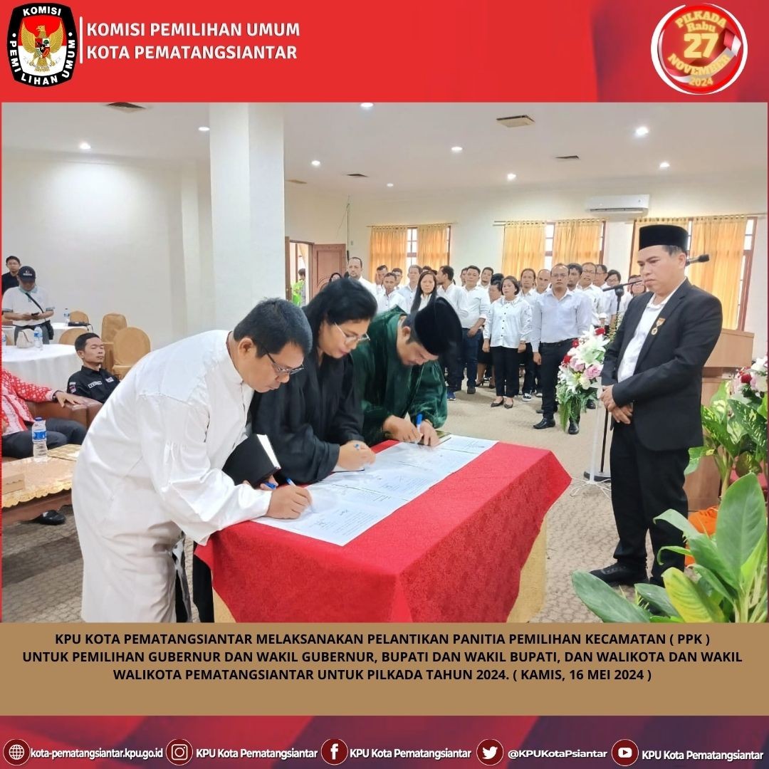 PELANTIKAN ANGGOTA PPK SE-KOTA PEMATANGSIANTAR DALAM PEMILIHAN WALIKOTA DAN WAKIL WALIKOTA PEMATANGSIANTAR TAHUN 2024