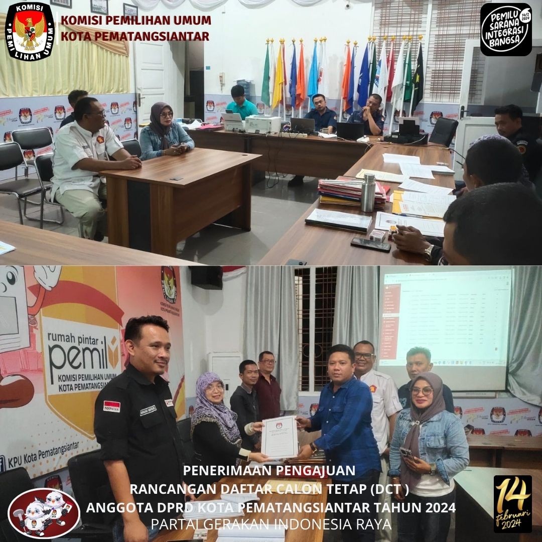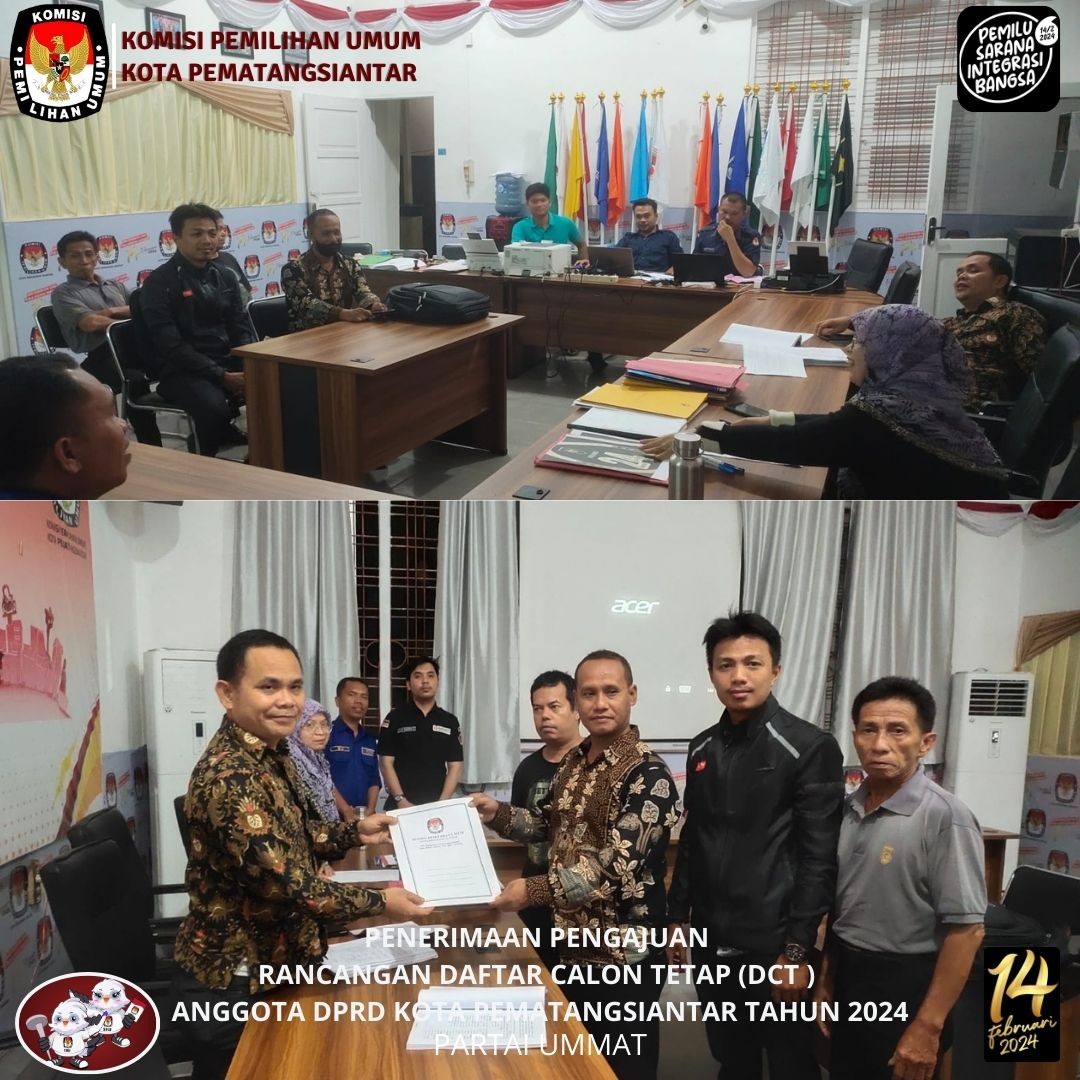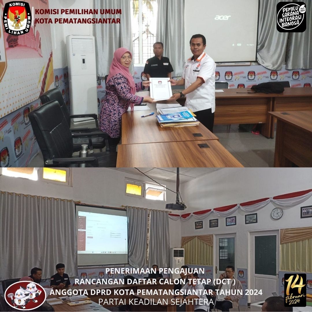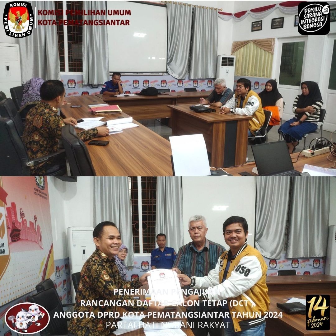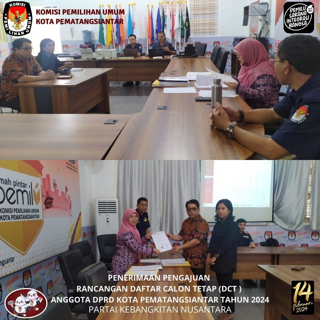KPU Kota Pematangsiantar menerima Pengajuan Perubahan Rancangan Daftar Calon Tetap (DCT) Anggota Dewan Perwakilan Rakyat Daerah (DPRD) Kota Pematangsiantar Partai Kebangkitan Nusantara (PKN) pada Pemilu 2024 bertempat di Kantor KPU Kota Pematangsiantar Selasa, 3 Oktober 2023.