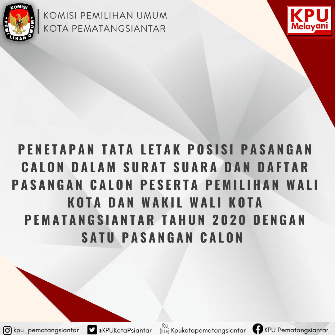 Pematangsiantar, kota-pematangsiantar.kpu.go.id – Berikut disampaikan Pengumuman Pergantian Nama Tim Kampanye & Penghubung, Nama PihakLain/Relawan & Akun Media Sosial Pasangan Calon Wali Kota dan Wakil Wali Kota Pematangsiantar, Ir. Asner Silalahi, MT., dan dr. Susanti Dewayani, Sp.A., dalam Pemilihan Wali Kota dan Wakil Wali Kota Pematangsiantar Tahun 2020.