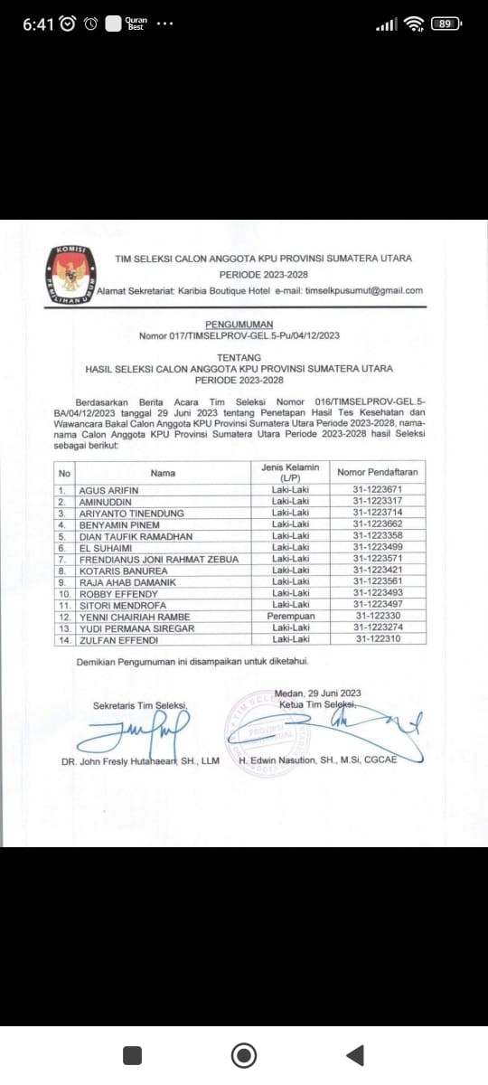 Ketentuan Pengajuan Bakal Calon Anggota DPRD Kota Pematangsiantar